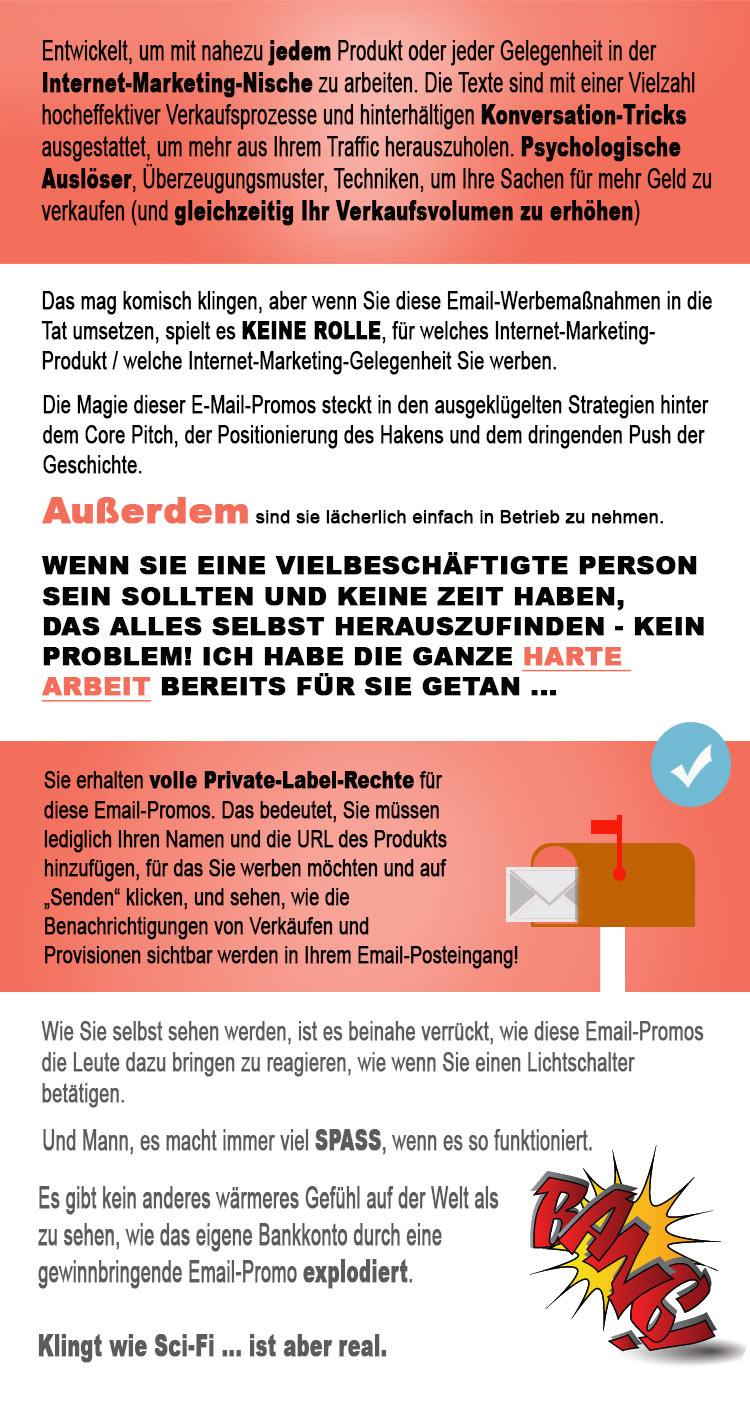 Es wurde jede Anstrengung unternommen, dieses Produkt und sein Potenzial sorgfältig darzustellen. Auch wenn das Internet eines der wenigen Bereiche ist, wo man sein Einkommen selbst bestimmen kann, gibt es dennoch keine Garantie, dass Sie mir der Anwendung dieser Techniken und dieses Materials Geld verdienen. Beispiele in diesem Text dürfen nicht als ein Verdienst Versprechen interpretiert werden. Die Höhe des Verdienstes ist völlig abhängig von der Person, die unser Produkt, unsere Ideen und Techniken anwendet. Wir geben nicht vor, dass es sich hier um ein "Reichwerden-System" handelt.