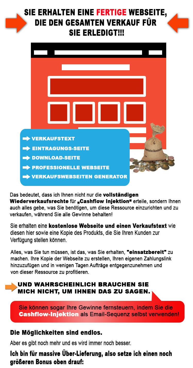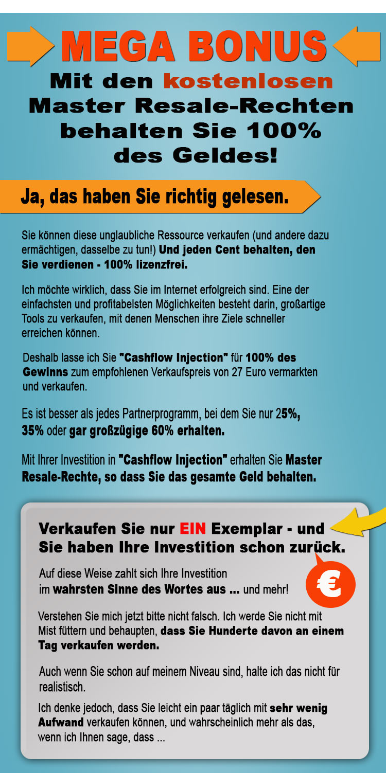 CashFlow Injektion und Bonus mit Master Resell Rechten